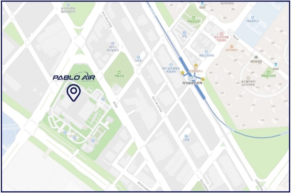 파블로항공 ▲한국 본사는 인천광역시 연수구 벤처로에, ▲한국 지사는 서울시 강서구 마곡동에, ▲기술연구소는 대전시 유성구에, ▲미국 지사는 애리조나주에 위치하고 있다.