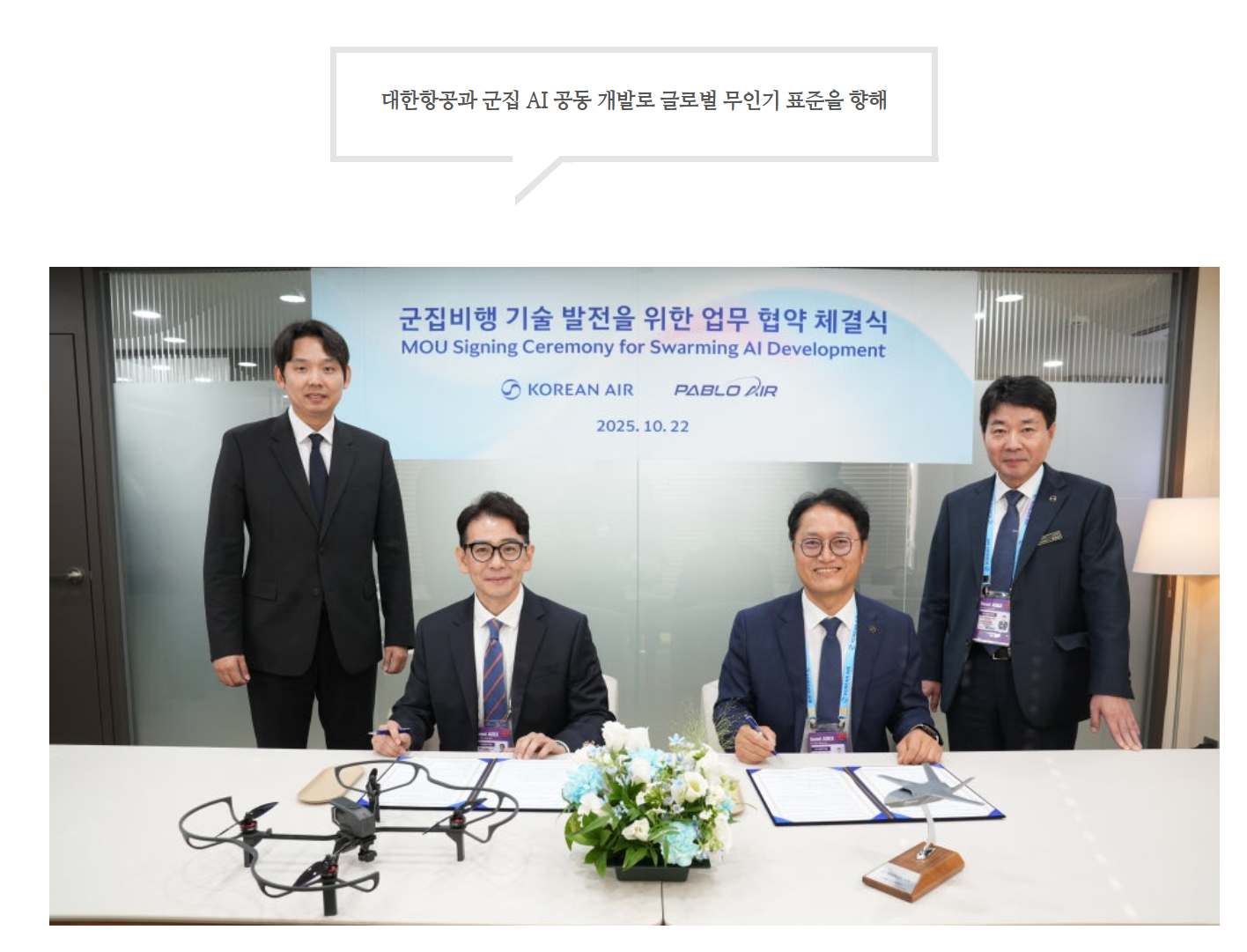 파블로항공과 대한항공은 차세대 드론 운용의 핵심 기술인 '군집 AI' 분야에서