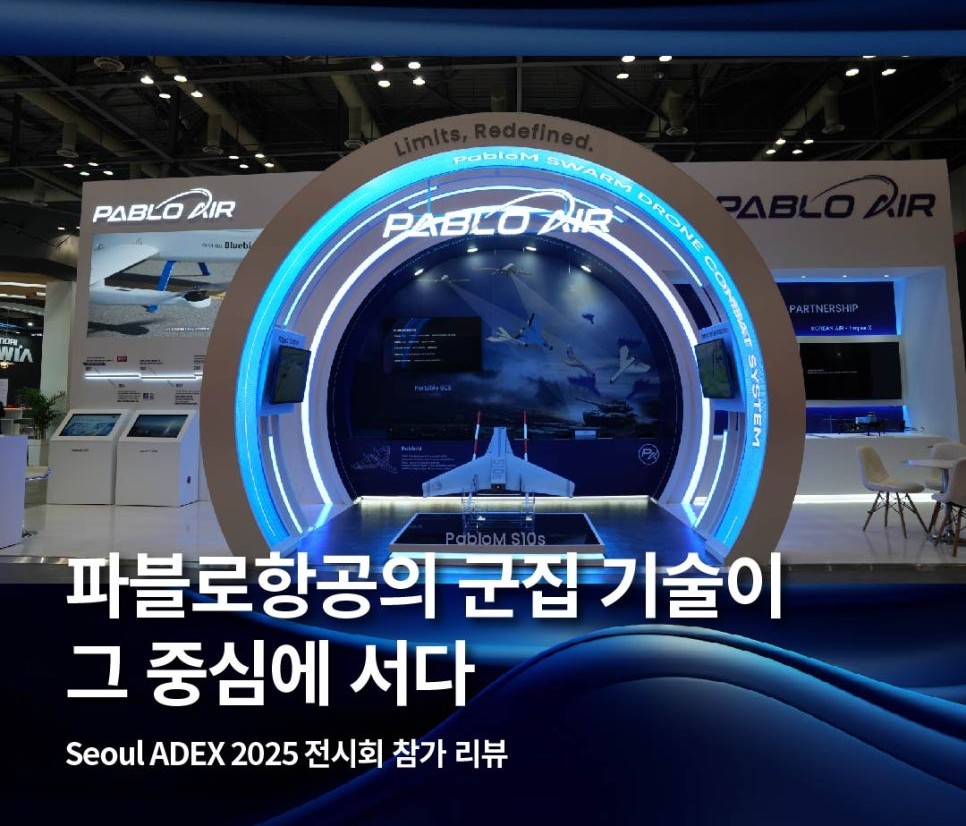 세계가 주목한 ADEX 2025, 파블로항공의 군집 기술이 그 중심에 서다지난 10월 20일부터 24일까지 일산 킨텍스에서 열린서울 국제 항공우주 및 방위산업 전시회(Seoul ADEX 2025)가 35개국 600여개 기업이 참가하고총 449억 달러(약 64조 6,500억 원) 규모의 수주 상담이 이뤄지는 등역대 최대 규모로 성황리에 막을 내렸습니다.​그 중심에서 파블로항공은 AI 군집 비행 기술과 자율드론 솔루션을 선보이며국내외 방산 관계자들과 업계 전문가들의 뜨거운 관심을 한몸에 받았습니다.'글로벌 무인기 및 무인로봇 플랫폼 기업'으로 도약,파블로항공의 비전을 선보이다 이번 ADEX 2025는 파블로항공이 방산 정밀 가공 전문기업 '볼크 (Volk)'와의 합병 이후 처음으로 선보인 전시회로'Limits, Redefined. (한계를 재정의하다)' 라는 슬로건 아래기술력과 제조 인프라가 결합된 'AI 군집드론 전투체계'의 비전을 제시했습니다.​특히 이번 전시는 단순한 홍보를 넘어연구개발 → 생산 → 협력 → 글로벌 확장으로 이어지는파블로항공의 ‘글로벌 무인기 및 무인로봇 플랫폼 기업'으로서의 비전을 보여주는 무대가 되었습니다.​전시 기간 내내 부스에는 방문객들의 발길이 끊이질 않았으며,다양한 기술 상담과 협력 미팅이 활발히 이루어져 실질적인 비즈니스 성과로 이어지는 성황을 이뤘습니다.MOU로 기술 협력 네트워크 대폭 확대전시 기간동안 파블로항공은 대한항공, 휴니드 테크놀러지스, 컨트로맥스와 함께총 3건의 업무 협약(MOU)을 체결하며 기술 협력 네트워크를 한층 강화했습니다.파블로항공과 대한항공은 차세대 드론 운용의 핵심 기술인 '군집 AI' 분야에서장기적인 기술 협력을 추진하기 위한 업무 협약을 체결했습니다.​양사는 파블로항공의 '군집 조율' 및 '통합 관제 플랫폼' 기술을 고도화하며,아래와 같은 주요 영역에서 상호 협력할 예정입니다.​​* 군집 AI 기반 자율 비행 제어* 지능형 분산 임무 통제 및 군집 운용 체계* AI 항공 MRO 및 InspecX 드론 기술 상용화파블로항공은 글로벌 방산전자 기업 '휴니드 테크놀러지스'와 군집드론 전투체계 고도화 및 전술통신체계 공동개발을 위한 MOU를 체결습니다.​AI 군집 비행 제어 기술과 휴니드의 FANET(자율 비행 네트워크) 통신 모듈을 결합해 차세대 국방 무인 체계 전술 통신 솔루션을 공동 개발하여향후 민수·산업용 드론 통신 시장으로의 확장 기반을 마련할 계획입니다.​또한, 국방 R&D 과제 공동 발굴, MRO 품질 관리 체계 강화, 글로벌 공급망 확대 등단계별별 협력을 추진하여 국방 무인체계 기술의 완성도를 한층 더 높이고자 합니다.​컨트로맥스와 지능형 작동기 기술을 군집 드론에 공동 적용하고공개 가능한 시제품 제작을 추진하기로 합의하였습니다.​이번 협약은 기계적 정밀성과 제어 안정성을한층 강화할 수 있는 기술 협력으로 평가되고 있습니다.​​기술과 협력으로 'K-Defense'의 새로운 기준을 세우다파블로항공은 볼크 합병으로 확보한 밀스펙(Mil-Spec) 제조 인프라와AI 군집 조율 기술, 정밀 생산 역량, 글로벌 협력 네트워크를 결합해국방 및 항공 산업의 새로운 기준을 제시하고 있습니다.​더불어 이번 전시를 통해 국내외 방산 업계의 다양한 전문가와 관계자들로부터 높은 관심을 받았으며태국, 싱가포르, 체코, 대만, 이스라엘, 미국 등 여러 국가 및 기관에서전장 환경별 기술 협력 문의와 후속 미팅이 활발히 이루어지고 있습니다.​파블로항공은 이를 기반으로 글로벌 시장에서의 입지를 더욱 확고히 다지며,‘한계를 재정의(Limits, Redefined)’한 미래 항공 혁신의 새로운 출발점으로이번 ADEX 2025를 기록하겠습니다.​